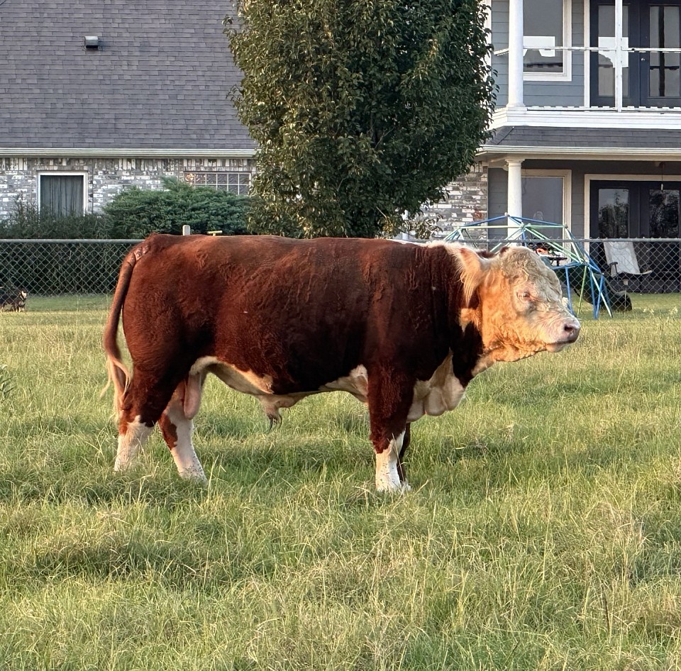 “Cowboy” WC Rhinestone Cowboy 43943637 is our new heterogeneous Polled Registered Miniature Hereford Bull. He is very dark in color, pigmented around both eyes and is extremely gentle. He is short and stout! He has LC Ozark Mtn Leo on both sides of his pedigree. Cowboy is MSUD Free! (MDF) (DLF) (IEF) (HYF) (MSUDF) (DBF)